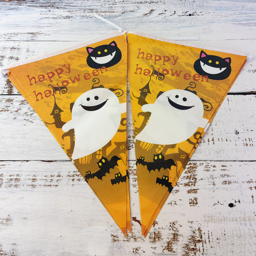 Гірлянда Хелловін прапорці №22 - найпопулярніший і найпопулярніший декор на Хелловін. Гірляндою можна прикрасити будь-яку частину інтер'єру, і скрізь вона виглядатиме гармонійно! Класна паперова гірлянда – склеювання на Halloween. Відмінно підійде для прикраси залів, пабів, ресторанів та нічних клубів на Хелловін. Гірлянда з прапорців виготовляється методом цифрового друку. Яскравість фарб та якість друку чудово та незмінно з часом. Як кріплення використовується капроновий шнур. Така прикраса, напевно, запам'ятається Вашим гостям і додасть яскравих фарб у Ваш інтер'єр. Оптовий постачальник №1 в Україні товарів для свята Карнавал Приколів пропонує широкий асортимент декору для свят та вечірок.