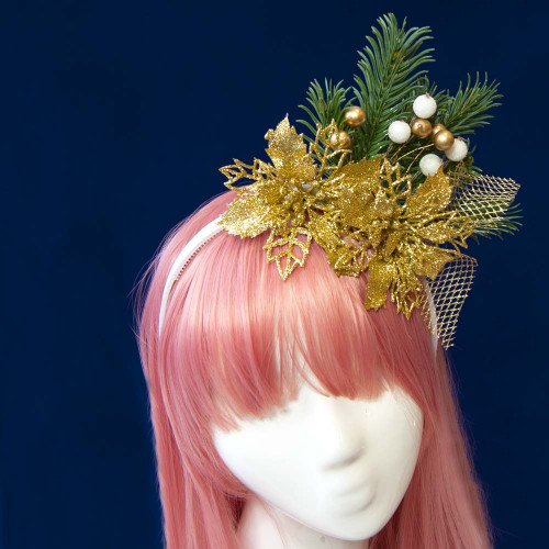 Інтернет магазин Карнавал Приколів пропонує Вам купити оптом по-справжньому зимовий та стильний обідок з гілочками ялинки та декоративними квітами, повністю ручної роботи. Чарівний різдвяний обідок – ошатний аксесуар для фотосесії, корпоративу, створення унікального образу чи будь-якої іншої урочистості. Золоті декоративні квіти пуансетії з литими гілочками ялинки виглядають просто чудово та дуже святково, а також створюють святковий настрій та ідеально впишуться у новорічні урочистості. Композиція надійно закріплена на пластиковому білому обідку універсального розміру, прикрашеному білою стрічкою репсової. Ця новорічна прикраса на голову зробить Ваше вбрання на будь-якій святковій вечірці і буде родзинкою образу, як вишенька на торті.