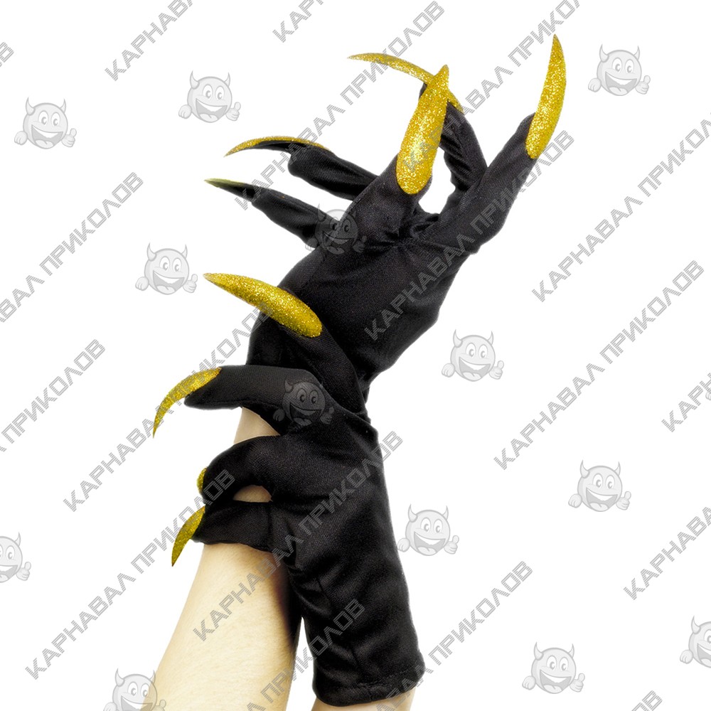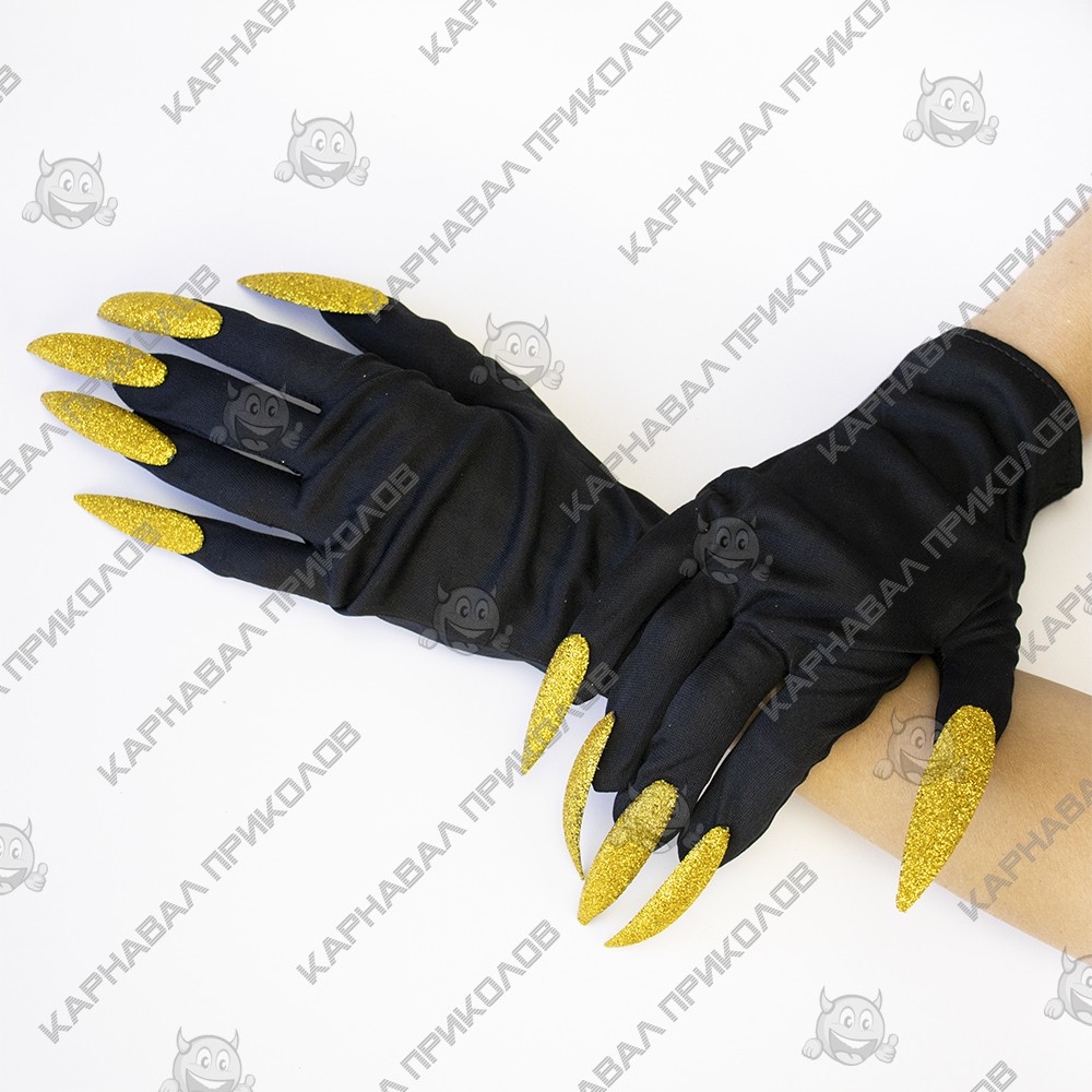 Перчатки Хэллоуин с когтями 27см (черные с золотым) выполнены из прочного и эластичного материала. Перчатки с когтями для косплея на Хэллоуин имеют универсальный размер. Для завершения Вашего жуткого образ интернет магазин Карнавал Приколов предлагает Вам купить реквизит для Хэллоуина и стать гвоздем вечеринки.