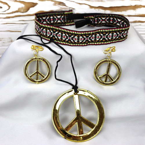 Вперед в минуле! Так можна назвати оригінальний подарунок для любителя вільного стилю – Аксесуарний набір Ретро Хіпі (золотий), що складається з кулона та кліпс у формі знака пацифік та налобної тасьми з яскравим орнаментом. Комплект підійде для тематичної вечірки в ритмі хіпі з 70-х років минулого століття, проте зовнішній вигляд його досить презентабельний, щоб послужити елементом сучасного ансамблю. Окремі деталі – атрибути хіпі – рухи актуальні в сучасних костюмах. Набір хіпі можна сміливо купити дівчині, яка обожнює вільний стиль в одязі та помітні деталі в біжутерії. Зверніть увагу, інтернет - магазин Карнавал Приколів - це не тільки прикольні дрібниці та забавні іграшки, наші пропозиції задовольнять найвибагливішого покупця!