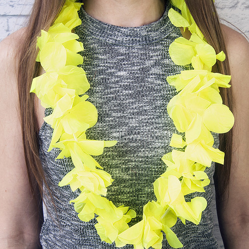 Без гавайських гірлянд з квітів весела тематична вечірка у гавайському стилі не обійдеться! Гавайські леї Орхідеї (жовті) надягають на дорогих і високоповажних гостей, але на маскараді пишні намисто лише підкреслять образ витонченої островитянки. Плавні рухи і танці, що зачаровують, у гавайських ритмах запам'ятаються гостям завдяки шикарним гірляндам на шиї. Вечірка перестає бути сірою та нудною, коли в її русло вливаються яскраво – барвисті Гаваї! Щоб гості відчули себе в потоці свята, інтернет-магазин Карнавал Приколів рекомендує купити кожному гостю гавайський атрибут як оригінальний подарунок – тоді ніхто не забуде про казково проведений час!