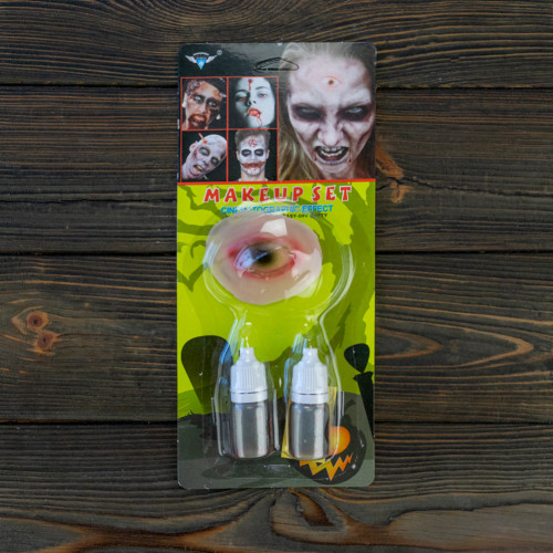 Жоден несамовитий образ монстра не буде повним без відповідного гриму. Тут на допомогу прийде страшний Штучна кров + Третє око, накладне око та вражаючий зомбі – макіяж. У комплект набору входить: накладне око, 2 пляшки штучної крові. Можна купити грим для Хелловіну універсальний, який підійде до кількох дорослих та дитячих костюмів, або вибрати спеціалізований. Різноманітні штучні шрами для Хелловін дозволяють відтворити порізи, опіки або укуси вампіра, додаючи будь-якій грі реалістичності.