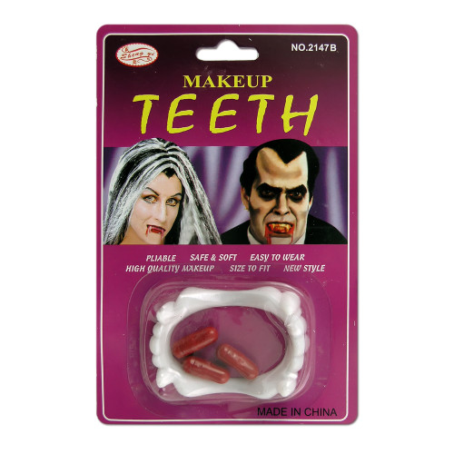 Хочете на тематичній вечірці або Хелловін виглядати незвичайно і жахливо? Але, банальне біле простирадло вже ні кого не лякає? Зуби білі з копсулами крові допоможуть Вам перетворитись і вдосконалити свій образ, зробивши з Вас справжнього вампіра. Інтернет - магазин Карнавал Приколів представляє Вам незвичайний набір для свята, зроблений з білого харчового пластику. Як використовувати? Ви можете відкрити і висипати порошок з капсули собі в рот або просто покласти капсулу в рот. Дочекайтеся розчинення капсули і змішайте вміст у роті з слиною. Готово ви в образі! Заборонено використовувати дітям віком до 12 років. При попаданні на одяг може залишити плями Зуби легко поміщаються у роті, а пазурі надягають на руку, як наперсток, і Вам залишиться доповнити Ваш образ костюмом, і тоді Ваша вечірка точно буде успішною та веселою. Такі незвичайні аксесуари можна використовувати, щоб розіграти друга, вночі одягнувши ці зуби та пазурі, можна непогано пожартувати з Вашого знайомого. Серед нашого широкого асортименту товарів, Ви знайдете безліч незвичайних та оригінальних аксесуарів для різноманітних заходів.