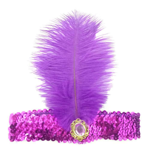 Пов'язка Чикаго бузкова - красива пов'язка з великим і пухнастим пером, перенесе Вас за часів Чикаго гангстерського і підкреслить Ваш образ на будь-якій вечірці!