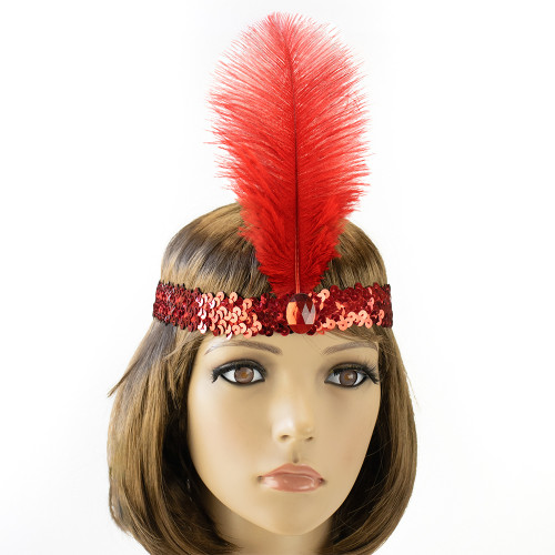 Пов'язка Чикаго червона - красива пов'язка з великим і пухнастим пером, перенесе Вас за часів гангстерського Чикаго і підкреслить Ваш образ на будь-якій вечірці!