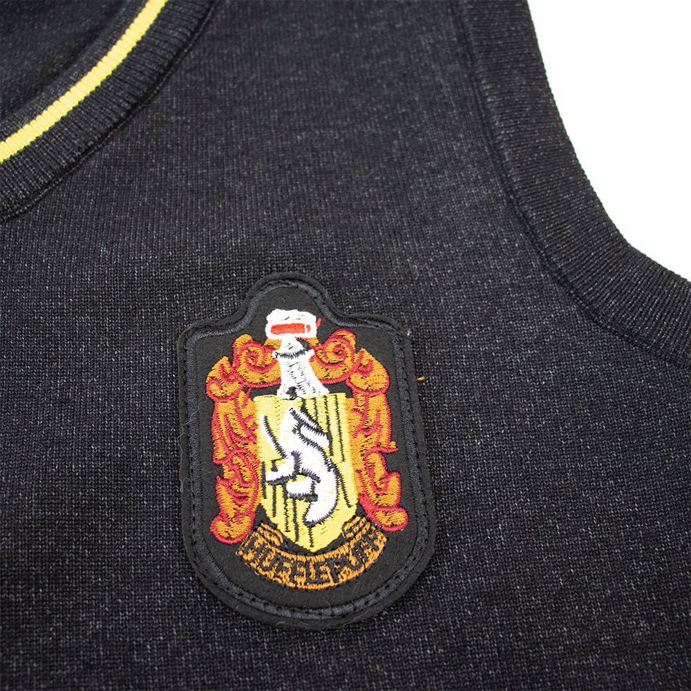 Для всіх, хто коли-небудь мріяв отримати лист з Хогвардсу, настав час одягатися у кольори свого факультету! Жилетки учнів факультетів Хогвардс – це ідеальний спосіб продемонструвати свою приналежність до магічного світу. Виконані з якісних матеріалів та з увагою до деталей, ці жилети стануть ключовим елементом для косплею, тематичних вечірок, фотосесій або просто для того, щоб додати магічного настрою до повсякденного гардеробу. Надягайте їх, і нехай дух Гоґвортсу завжди буде з вами! Доброта, працьовитість, вірність і терпіння – це ваші риси? Тоді Жилетка учня факультету Пуффендуй Хогвардс ідеально вам підійде! Жилетка темно-сірого кольору з кантом у теплих та затишних кольорах Пуффендуя – жовтого та чорного – цей жилет прикрашений гербом факультету з борсуком. Вона символізує надійність і дружелюбність, роблячи вас частиною самого гостинного та вірного факультету Гоґвортсу. Незамінний елемент для створення повноцінного образу учня Гоґвортсу. Жилетка виготовлена з міцних та комфортних матеріалів, що забезпечують довговічність та зручність носіння. Відмінний вибір для тих, хто цінує комфорт та завжди готовий прийти на допомогу!