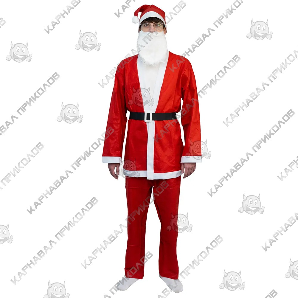 | Дополнительные характеристики: | Пояс - длина: 135ьсм, ширина: 4,5см Куртка - плечи: 48см, рукав: 63см, длина по спине: 85см Шапка - длина: 39см ширина: 29см, Штани - ширина: 60см длина: 98см Борода - длина 27 см. на рост 170 |