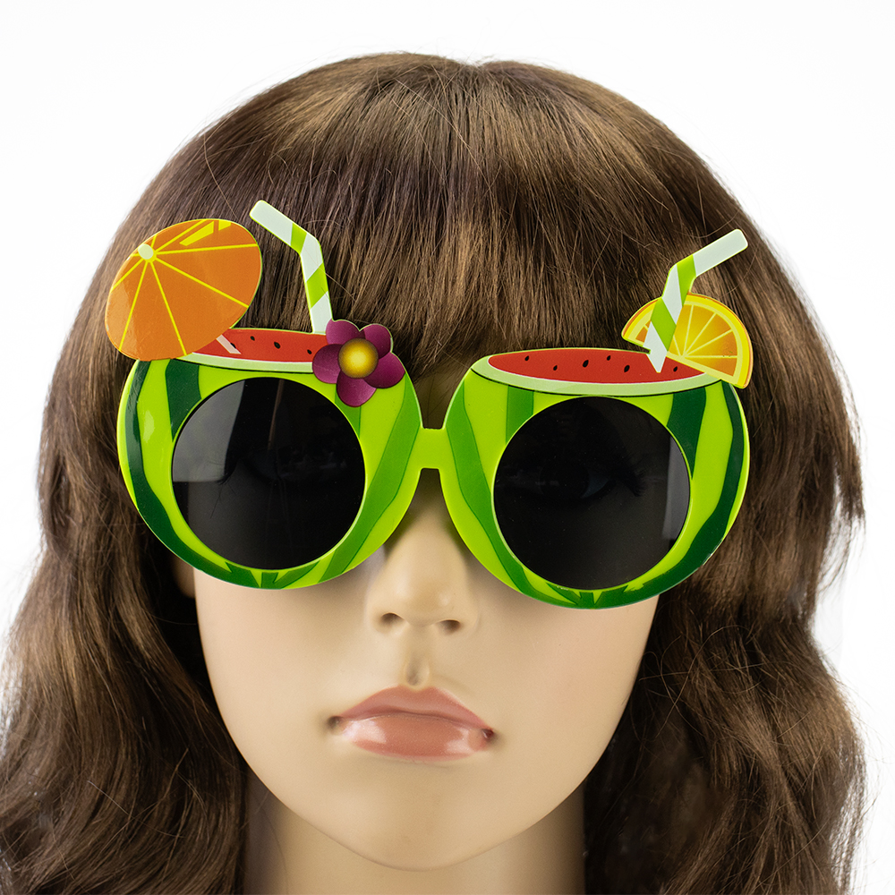 Окуляри Гавайські Кавуни Коктейль (зелені) – це окуляри для пляжної вечірки, корпоративу, фотосесії чи дня народження. Окуляри для вечірки Коктейль мають зелену оправу у формі кавуна. Друга поширена назва окулярів: Окуляри гавайський тропічний коктейль. Не є сонцезахисними. Не мають UF-фільтрів. Доповнити обаз до цих окулярів допоможе гавайська атрибутика: орхідеї леї, гавайські костюми, які ви можете купити оптом в нашому інтернет-магазині. Смішні карнавальні окуляри коктейль повеселять друзів і привернуть увагу до Вашої особи.