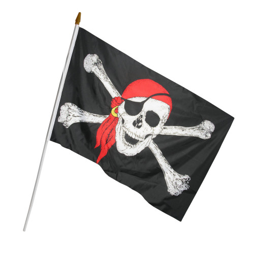 Цікавить карнавальний реквізит для піратської вечірки з дропшипінгу? Тоді інтернет магазин Карнавал Приколів представляє Вам Піратський Прапор 45х30см з пластиковою ручкою №1. На чорному тлі прапора розташований білий череп Веселий Роджер з червоною банданою та золотим сережкою. Прапор корсара має пластикову ручку, на яку приклеєно прапор розміром 45х30см. Доповненням до образу пірата стане Шабля Пірата. Наш магазин пропонує товари оптом та для дропшиперів, ви можете оформити замовлення на сайті Карнавал Приколів та задати будь-які запитання, що цікавлять менеджер, замовивши дзвінок на нашому сайті
