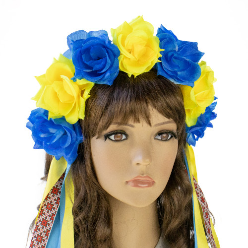 Український віночок на обідку зі стрічками Український віночок зі стрічками на обідку Власта 13448 (жовтий з синім) – виконаний зі штучних троянд яскраво-жовтого та синього кольору та атласних стрічок у тій же кольоровій гамі та з принтом вишиванки. Український вінок із квітів і стане чудовим доповненням українського образу для фотосесії. Виготовлений на основі обідка для волосся, тому добре тримає форму та щільно тримається на голові. Виготовлення Український віночок на обідку зі стрічками Український віночок зі стрічками на обідку Власта 13448 (жовтий з синім) проводиться нашими майстрами на замовлення в термін від 1-го до 3-х робочих днів. Ми пропонуємо Вам купити прикрасу для волосся з авторської серії Handmade вінків в українському національному стилі в інтернет-магазині Карнавал Приколов Будьте у тренді – доповніть свій образ гарним аксесуаром, який Ви можете підібрати на нашому сайті. Пишний український вінок чудово підійде для фотосесії, дефіле, будь-якого виступу на сцені, етнофестивалю, зйомок фільму чи кліпу. Компанія Карнавал Приколов залишає за собою право вносити зміни до технічних характеристик, кольору, комплектації та конструкції, що не погіршують експлуатаційних характеристик виробів, без попереднього повідомлення. Зображення та колір представленого товару можуть незначно відрізнятися від оригіналу продукції, залежно від роздільної здатності та налаштувань монітора, а також умов освітлення під час зйомки. Карнавал Приколов представлений великий вибір оригінальних головних уборів для будь-яких заходів. Пропонуємо купити Український віночок на обідку зі стрічками Український віночок зі стрічками на обідку Власта 13448 (жовтий із синім) та створити яскравий образ в етнічному стилі. Підберіть свій ідеальний аксесуар зараз на нашому сайті!