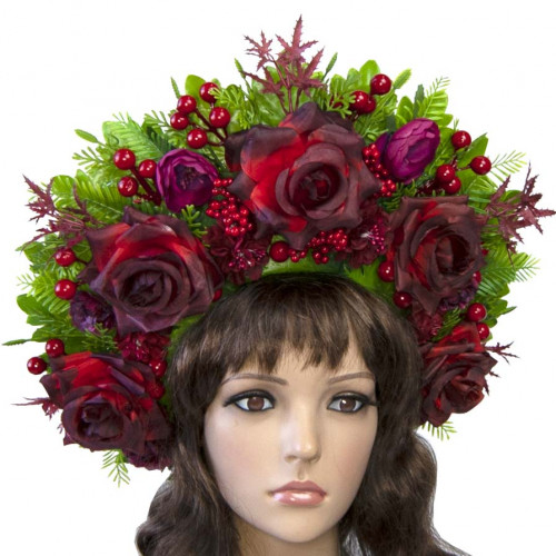 Український вінок високий на голову Ведана Ведана 11034 – з ним легко можна створити оригінальний образ на свято. Український вінок з квітів, або квітковий вінок виконаний з штучного листя, травинок, марсалової троянди, ягідних гілочок калини. Незважаючи на об'ємність, етнічний вінок дуже легкий. Виготовлений на міцній основі (каркасі з дроту), тому добре тримає форму, розмір регулюється за допомогою стрічки позаду. Висота корони по центру приблизно 15-17 см. Кріплення – стрічка (під волоссям). Виготовлення Українського вінка високого на голову Ведана 11034 проводиться нашими майстрами на замовлення в термін від 1-го до 3-х робочих днів. Пишний український вінок чудово підійде для фотосесії, дефіле, будь-якого виступу на сцені, етнофестивалю, зйомок фільму чи кліпу. Ми пропонуємо Вам купити прикрасу для волосся з авторської серії Handmade корон в українському національному стилі в інтернет-магазині Карнавал Приколів та поринути в атмосферу етнічного свята. Будьте у тренді – доповніть свій образ гарним аксесуаром, який Ви можете підібрати на нашому сайті! Компанія Карнавал Приколів залишає за собою право вносити зміни до технічних характеристик, кольору, комплектації та конструкції, що не погіршують експлуатаційних характеристик виробів, без попереднього повідомлення. Зображення та колір представленого товару можуть незначно відрізнятися від оригіналу продукції, залежно від роздільної здатності та налаштувань монітора, а також умов освітлення під час зйомки.