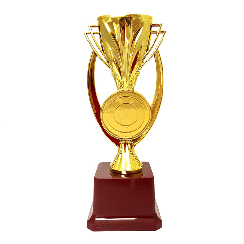 Статуетка 57013 Супер Кубок чудовий та оригінальний подарунок. Подарункова статуетка виконана у вигляді кубка з великими ручками дугами, з пластику з покриттям під золото на стійкій підставці, такий сувенір стане чудовою прикрасою інтер'єру і подарунком, що запам'ятовується. Статуетка упаковується в індивідуальний тубус з прозорого пластику. Унікальна упаковка розроблена компанією Карнавал Приколів. На статуетках також можна виконати друк індивідуального напису з діаметром жетону 50мм. Колір тла: синій, червоний, зелений. Також виготовляємо індивідуальний друк напису на табличці для п'єдесталу Кубків та Статуеток розмірами: 5. 2х3. 5см (колір тексту – чорний, фон – золотий). На бордовому п'єдесталі статуетки може бути присутня імітація мармурових розлучень. Наш магазин пропонує товари оптом та для дропшиперів, ви можете оформити замовлення на сайті Карнавал Приколів та задати будь-які питання, що цікавлять менеджеру, замовивши дзвінок на нашому сайті.