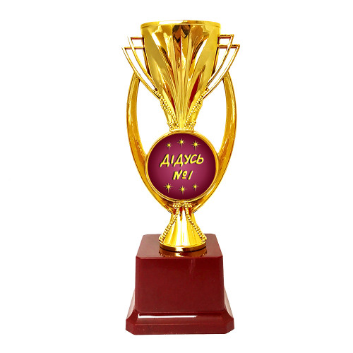 Статуетка 572682 Дідусь №1 Супер Кубок прекрасний і оригінальний подарок, відмінний і оригінальний сюрприз, її можна подарувати на ювілей, а можна на день народження або просто в якості презенту разом з яким або подарунком. Подарок символічний і незвичайний, говорящий як дорога для вас вітається людина! Подарова статуетка виконана з щільного пластику з покриттям під золото і стійкою підставкою, такий сувенір стане відмінним оздобленням інтер'єру і пам'ятним подарунком. Також виготовляємо індивідуальну печать надписи на табличці для п'єдестала Кубков і Статуеток розмірами: 4. 2х2. 5см (колір тексту - чорний, фон - золотий). На бордовом п'єдестале статуетки може бути присутня імітація мраморних розводів. Наш магазин пропонує товари оптом і для дропшипперів, ви можете оформити замовлення на сайті Карнавал Приколів і задати будь-які цікаві питання менеджеру, замовивши дзвінок на нашому сайті.