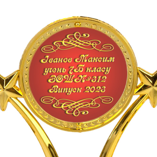 Інтернет-магазин Карнавал Приколів пропонує вашій увазі послугу друку індивідуального напису на статуетках з діаметром жетону 50мм. Колір тла: червоний. Колір тексту напису на статуетки: золото імітація. Ми виготовляємо індивідуальний друк напису для статуеток Calligraph Modern шрифтом. Максимальна кількість символів на даному жетоні: 55 символів (з урахуванням пробілів та знаків пунктуації), максимальна кількість рядків для розміщення - 4. Друк тексту проводиться на фотопапері і потім ламінується. Макет для друку виготовляється згідно з представленим шаблоном. Довільний текст, але не більше максимальної кількості символів. Гравірувальних робіт ми не проводимо. Відвантаження товарів з індивідуальним написом провадиться на наступний робочий день після підтвердження макета та оформлення замовлення. У нас широкий асортимент кубків для спортивних та танцювальних змагань, випускних вечорів, проведення церемоній нагородження та корпоративних подарунків та сувенірів. І це далеко не все, що ми можемо для Вас зробити. Залишились питання? Задайте їх менеджеру, замовивши дзвінок на сайті.