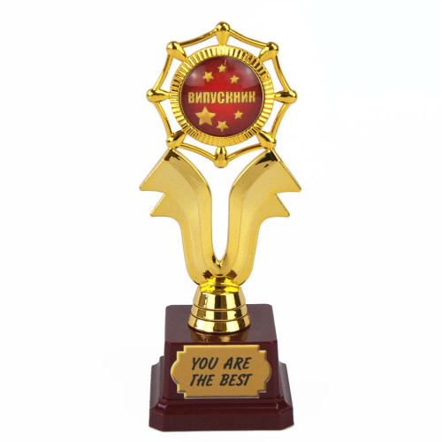 Статуетка 570902 Випускник На гребені хвилі Classic BEST чудовий та пам'ятний подарунок на Випускний. Статуетка виконана з щільного пластику з покриттям під золото на стійкому класичному бордовому п'єдесталі. З табличкою YOU ARE THE BEST (переклад з англ. Ти найкращий) на п'єдесталі та об'ємним жетоном з написом українською мовою Випускник, такий сувенір стане чудовою прикрасою інтер'єру та подарунком, що запам'ятовується. Статуетка упаковується в індивідуальний тубус з прозорого пластику. Унікальне пакування розроблене компанією Карнавал Приколів. На бордовому п'єдесталі статуетки може бути присутня імітація мармурових розлучень. Інтернет-магазин Карнавал Приколів пропонує великий вибір подарункових кубків та статуеток з можливістю додавання тексту індивідуального привітання. Наш магазин пропонує товари оптом та для дропшиперів, ви можете оформити замовлення на сайті Карнавал Приколів та задати будь-які питання, що цікавлять менеджеру, замовивши дзвінок на нашому сайті.