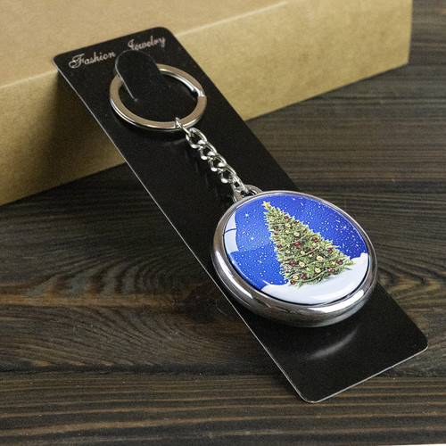 Брелок 6851 об'ємний Новорічна Ялинка - магія в кожному русі. Цей святковий об'ємний брелок - ідеальний спосіб завжди мати при собі частинку новорічного дива! Брелок виконаний у формі круглого медальйона з яскравим, якісним зображенням. У центрі композиції - пишна, ошатна ялинка, прикрашена червоними та золотими кульками, що стоїть на засніженому фоні під глибоким синім небом, всипаним мерехтливими зірками та сніжинками. Завдяки глянцевому покриттю (що надає візуального об'єму та блиску) брелок виглядає дуже привабливо та святково. Він є двостороннім, що забезпечує естетичну привабливість з будь-якого ракурсу. Цей брелок чудово підходить як аксесуар до зв'язки ключів, як прикраса для рюкзака або як милий новорічний подарунок чи корпоративний сувенір у святковий сезон. Металевий ланцюжок і кільце надійно кріплять брелок, додаючи йому довговічності та зручності у використанні. Нехай цей об'ємний брелок з новорічною ялинкою завжди нагадує вам про чарівність свят!