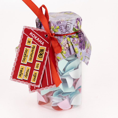 100 та Одна причина, чому я люблю тебе, Кохана (укр.) — ретельно відібраний нашими фахівцями з яскравих емоцій. Баночка допоможе Вам щодня радувати близьку Вам людину теплими словами кохання. Такий дивовижний сюрприз можна подарувати на день народження або піднести на день усіх закоханих. Розгортаючи фантики, вимовляйте Найкраща, Мила, Кохана… Зрозуміло, Подарунок виконано українською мовою. Ви можете постаратися зробити таку банку своїми руками, але це забере у Вас багато часу. Щоб Ви не сиділи кілька годин, вирізуючи фантики та вигадуючи, що ж написати, ми зробили все за вас. Ви можете купити вже готову захоплюючу гру в подарунок рідним та близьким, друзям та знайомим. Інтернет магазин Карнавал Приколів пропонує купити оптом цікаві та оригінальні подарунки за низькими цінами, а також Ви можете оформити замовлення на сайті і задати будь-які запитання менеджеру, замовивши дзвінок на нашому сайті.