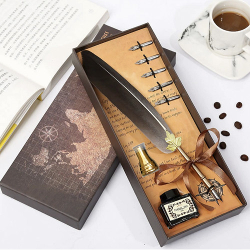 Вінтажний подарунковий набір для каліграфії Ручка перова (сірий): Мистецтво письма та магія старовинних послань! Пориньте у світ витонченого листа та старовинних традицій з нашим Вінтажним подарунковим набором для каліграфії Ручка перова (сірий). Цей елегантний комплект стане ідеальним подарунком для поціновувачів класики, творчих особистостей, а також для тих, хто шукає унікальний сувенір, натхненний чарівною атмосферою. З такою ручкою кожне написане слово набуває особливої чарівності та ваги. У центрі набору - витончена перова ручка, виготовлена з пера благородного сірого кольору. Вона прекрасно лежить у руці і дозволяє відчути всю красу листа по-старому. Ручка та елементи набору поєднують у собі вінтажну естетику та витонченість, нагадуючи про часи, коли лист був справжнім мистецтвом. Набір виготовлений із міцних матеріалів, включаючи метал для тримача ручки та натуральне перо для наконечника, а також елегантну скляну чорнильницю. Все це упаковано в стильну картонну коробку, яка наголошує на подарунковому статусі. Урожай подарунковий набір для каліграфії Ручка пухка ідеальний подарунок для любителів каліграфії, письменників, художників, колекціонерів або просто тих, хто цінує красиві та незвичайні предмети. Цей набір — не просто інструмент, що пише, це ціла історія. Для справжніх поціновувачів: Дозволяє практикувати мистецтво каліграфії, створювати запрошення, листи та листівки з унікальним рукописним шармом. Вишуканий елемент декору: Прекрасно доповнить робочий стіл, бібліотеку чи кабінет, надавши інтер'єру нотки аристократизму. Натхнення для творчості: Стимулює уяву та допомагає створювати справжні шедеври. Магічний сувенір для фанатів: Для всіх, хто мріє про чарівний світ Хогвартсу, ця перова ручка стане чудовим сувеніром на тему Гаррі Поттера, дозволяючи відчути себе справжнім учнем школи чарівництва та чарівництва, що записує заклинання або листи на урок. Пориньте в атмосферу старовини та чаклунства з Вінтажним подарунковим набором для каліграфії Ручка перова (сірий) від Карнавалу Приколів!
