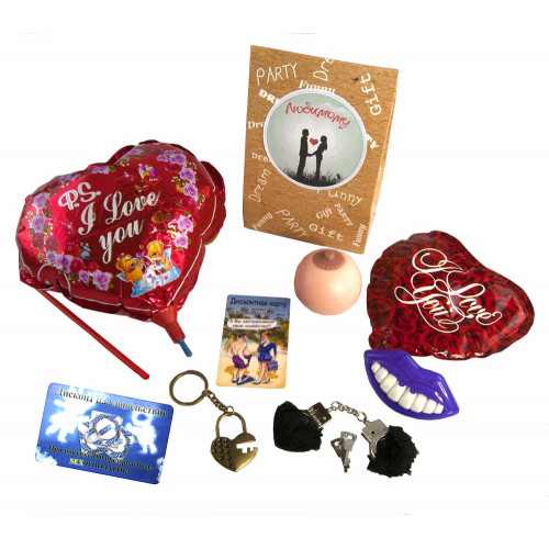 Оригінальний подарунок 67101 УЛЮБЛЕНОМУ незрівнянний варіант для сюрпризу коханому на річницю весілля або День закоханих. Вибираючи, що подарувати коханій людині, можна втілити в реальність усі найсміливіші мрії. Представляємо вашій увазі нестандартний подарунковий набір, в якому знаходиться п'ять незвичайних подарунків, упакованих у барвисту коробку. До складу входить посвідчення Коханого Чоловіка та картка Знижка на всі види страховки з гумористичною написом. Ці милі дрібнички гарантовано викличуть посмішку та розвеселять Вашого коханого. Релаксант груди справжній чоловічий брелок! Виглядає він як натуральні жіночі груди, які вже точно сподобається вашому чоловікові. Також в комплект входить ще один брелок серця, воно як ніщо інше розповість про Ваші почуття коханому. Такий брелочок буде маленьким доказом Вашого великого кохання, навіть якщо Ваш коханий не поряд, дивлячись на плюшеве серце, він пам'ятатиме про вас. Доповнять такий кумедний та нестандартний подарунок хутряні наручники на пальці. Така незвичайна прикраса для пальців може стати сексуальною іграшкою для закоханих. Ваш ненаглядний буде, безперечно, радий такому кумедному сюрпризу. Веселий настрій вам гарантовано! Купити такий подарунок для хлопця Ви можете в інтернет-магазині Карнавал Приколів. До складу входить: кулька на паличці, релаксант груди маленькі, наручники на пальці, дисконтна карта Знижки на всі види страховки, свисток губи, брелок вінтажний серце, карта дисконтна карта Дисконт на задоволення