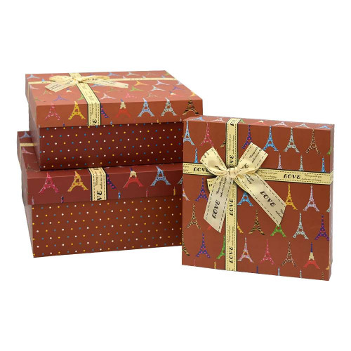 Ми хочемо допомогти вам максимально доповнити свій асортимент упаковки незвичайних подарунків, тому пропонуємо вам купити подарункову коробку КП-2. 4 (набір 7шт), набір входить 7 коробок різних розмірів. Інтернет магазин Карнавал Приколів пропонує набір подарункових коробок різного розміру, який стане незамінним атрибутом у святкові дні і збільшить середній чек замовлення. Адже для будь-якого подарунку потрібна упаковка. Хіба не чудово, коли все можна купити в одному місці? Подарункова коробка формату кришка-дно, з зовнішнього боку оформлена в сучасному стилі, вишуканим малюнком ейфелевих веж на кришці, прикрашеною золотою стрічкою з пишним бантом і різнокольоровим горошком на дні, внутрішньою в білий колір. Матеріал виготовлення – багатошаровий крейдований картон щільністю 235 гр/м2. Подарункові коробки - підходять не лише для пакування подарунка. Але й свого роду є подарунком. Куди надалі можна буде складати різні дрібнички. Так само підходять для створення живих кольорів композицій. Стильні та ніжні коробочки ідеально підійдуть для дизайну інтер'єру, а також для зберігання ваших речей-дрібниць. Буде ідеальним доповненням до оригінального подарунка дівчині, мамі, дружині.