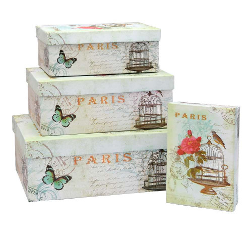 Ми хочемо допомогти вам максимально доповнити свій асортимент упаковки незвичайних подарунків, тому пропонуємо вам купити подарункову коробку КП-4. 2 (набір 4шт), в комплект входить 4 коробки. Інтернет-магазин Карнавал Приколів пропонує придбати набір подарункових коробок різного розміру, який стане незамінним атрибутом у святкові дні та збільшить середній чек замовлення. Адже для будь-якого подарунку потрібна упаковка. Хіба не чудово, коли все можна купити в одному місці? Подарункова коробка формату кришка-дно, з зовнішнього боку оформлена в ретро стилі, вишуканим малюнком пташки на клітці з метеликом та написом Париж, внутрішнім у білий колір. Матеріал виготовлення – багатошаровий крейдований картон щільністю 235 гр/м2. Подарункові коробки - підходять не лише для пакування подарунка. Але й свого роду є подарунком. Куди надалі можна буде складати різні дрібнички. Так само підходять для створення живих кольорів композицій. Стильні та ніжні коробочки ідеально підійдуть для дизайну інтер'єру, а також для зберігання ваших речей-дрібниць. Буде ідеальним доповненням до оригінального подарунка дівчині, мамі, дружині.