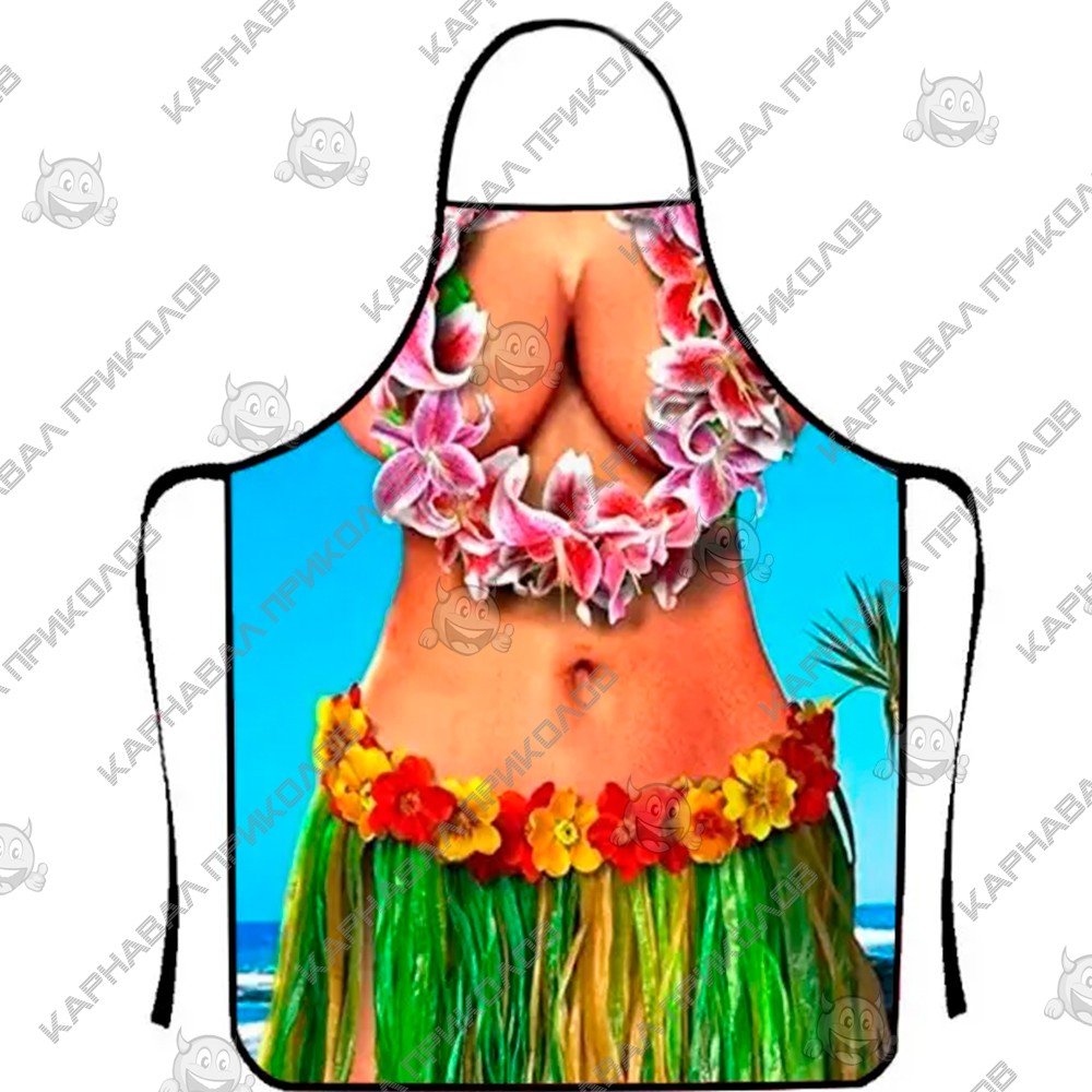Хотите добавить кухне жара и солнечного настроения? Фартук с приколом Гавайи - это озорной и невероятно эффектный аксессуар, от которого действительно невозможно отвести взгляд! Он создан для тех, кто любит быть душой компании, ценит смелые шутки и мечтает о вечном лете. Принт на фартуке имитирует стройную женскую фигуру в традиционном наряде для танца хула. Вместо скучной ткани - пышные цветочные леи (гирлянды) из розовых лилий, которые игриво прикрывают пышную грудь, и яркая юбка из пальмовых листьев, украшенная разноцветными бутонами. Фон нежно-голубого неба и пальмовая ветвь на заднем плане создают полную иллюзию того, что обладательница фартука только что вернулась с побережья Тихого океана. Этот фартук работает как идеальный ледокол на любой вечеринке. Он мгновенно превращает процесс приготовления коктейлей или закусок в веселое шоу, добавляя образу легкости и кокетства. Кому подойдет такой подарок? такой фартук с прикольным принтом идеальный реквизит для тематической Гавайской вечеринки, девичника или празднования дня рождения у бассейна. Оригинальный подарок с перчинкой: Шикарный сюрприз для подруги или супруги, обладающей отличным чувством юмора. Это комплимент её смелости и жизнелюбию. Для создания настроения: Даже если за окном дождь или снег, стоит надеть этот фартук - и температура в доме мгновенно поднимется на несколько градусов! Благодаря высококачественной печати обеспечивается реалистичность принта! Изготовлен из прочного, легкого габардина. Он надежно защищает одежду от брызг тропических соков или жира, при этом практически не ощущается на теле. Фартук легко регулируется завязками, благодаря чему гавайский наряд идеально садится на любую фигуру, подчеркивая её достоинства. Зачем лететь на острова, когда Гавайи легко можно увидеть на собственной кухне?