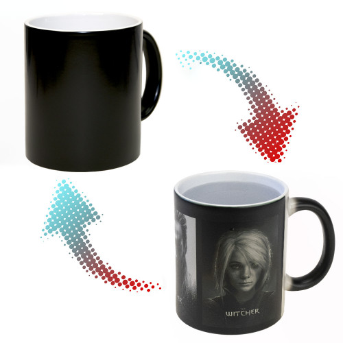 Чашка хамелеон 66003 Відьмак Цирі на вигляд звичайна однотонна чашка, але якщо залити гарячий напій, як на ній з'являється хитромудрий малюнок - персонажі циклу Відьмак. Об'єм керамічної чашки 350 мл, завдяки чому, Ви можете повністю і насолодитися улюбленим напоєм. Її можна купити як оригінальний та символічний подарунок любителю жанру фентезі на знак уваги. А з цією чашкою точно буде забезпечена основна увага. Чашки власного виробництва можлива на замовлення будь-яку кількість. Широкий вибір чашок та кухлів з оригінальним дизайном для будь-якого приводу Ви можете купити в інтернет магазині Карнавал Приколів.