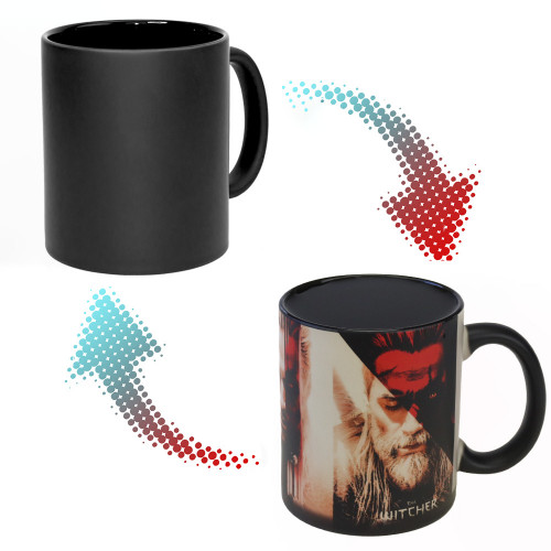 Чашка хамелеон 66004 Відьмак Геральт (чорна) на вигляд звичайна однотонна чашка, але якщо залити гарячий напій, як на ній з'являється хитромудрий малюнок - персонаж циклу Відьмак. Об'єм керамічної чашки 350 мл, завдяки чому, Ви можете повністю і насолодитися улюбленим напоєм. Її можна купити як оригінальний та символічний подарунок любителю жанру фентезі на знак уваги. А з цією чашкою точно буде забезпечена основна увага. Чашки власного виробництва можлива на замовлення будь-яку кількість. Широкий вибір чашок та кухлів з оригінальним дизайном для будь-якого приводу Ви можете купити в інтернет магазині Карнавал Приколів.