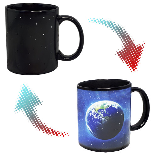 Чашка хамелеон Земля з приголомшливим спецефектом. Варто залити гарячий напій, як на зоряному небі з'являється планета Земля. Об'єм керамічної чашки 350 мл, завдяки чому, Ви можете повністю і насолодитися улюбленим напоєм. Таку оригінальну чашку можна подарувати Вашому другові чи подрузі, які захоплюються астрономією чи географією. Така ж чашка стане забавним подарунком для дитини. Широкий вибір чашок та кухлів з забавним дизайном для будь-якого приводу Ви можете купити в інтернет магазині Карнавал Приколів.