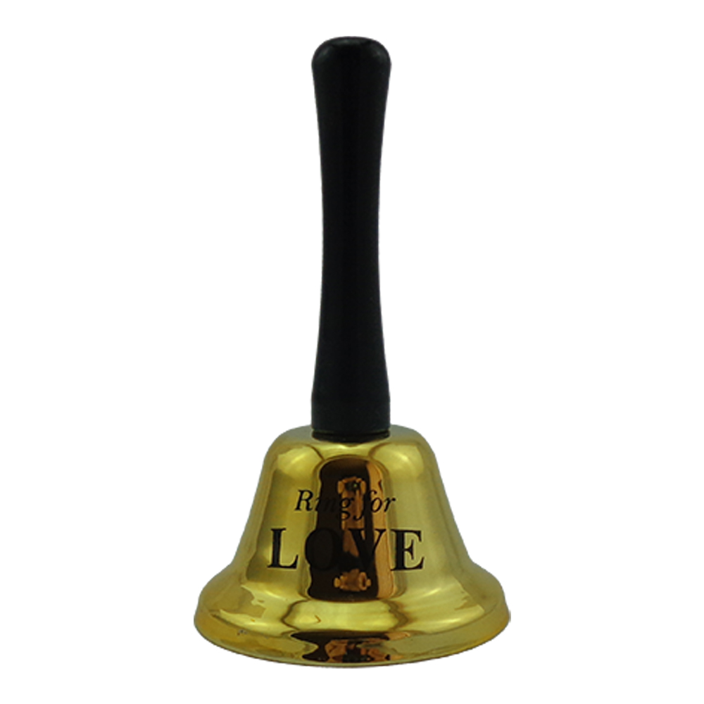 Дзвіночок LOVE (золотий) - Поклич кохання одним дотиком! Додайте у стосунки трохи магії та приємної гри! Цей елегантний настільний дзвінок із написом Ring for a LOVE - ідеальний спосіб нагадати партнеру про свої почуття або жартома замовити порцію ніжності та обіймів. Дзвінок має якісне дзеркальне золоте покриття, яке виглядає дорого та вишукано. На золотистому куполі нанесено стильний чорний напис Ring for LOVE (Подзвони, щоб отримати кохання). Дзвінок має довгу ергономічну ручку для зручного використання в руках. Використовуйте його як милий інструмент для комунікації в парі - один дзвінок може означати комплімент, обійми або запрошення на побачення. Чудова ідея для презенту на День святого Валентина, річницю знайомства або просто як приємний сюрприз для коханої людини. Стане оригінальним атрибутом для фотосесій або прикрасою святкового столу молодят. Цей невеликий предмет допомагає зняти напругу, викликає посмішку та додає романтиці нотки дитячої безпосередності.