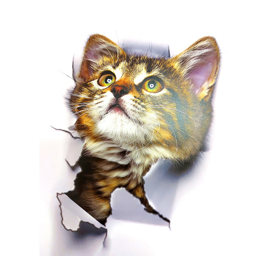 Інтер'єрна наклейка CD Кіт XH2001 25х16,5см – це швидкий спосіб класно прикрасити свій будинок. Інтернет-магазин Карнавал Приколів пропонує Вам купити інтер'єрні наклейки тематики тварин, які ідеально підійдуть на кухню, спальню, вітальню, дитячу або ігрову кімнату. Прикрасу на стіну оцінять діти у своїх спальнях чи ігрових кімнатах. Інтер'єрна наклейка CD Кіт XH2001 25х16,5см принтом кошеня, що виглядає крізь стіну. Розмір листа з наклейками: 16,5х25 см. Як 3D наклейка клеїться на стіну? Спосіб поклейки дуже простий. Для початку потрібно очистити поверхню, на яку потрібно наклеїти. Після цього знімаємо плівку і переносимо малюнок на стіну або іншу площину рукою або ганчіркою. На які поверхні можна клеїти інтер'єрну наклейку? Поклейка можлива на будь-яку ІДЕАЛЬНО ГЛАДКУ ГЛЯНЦЕВУ поверхню, наприклад: стіна пофарбована глянсовою фарбою без будь-яких рельєфів (у фарбі не повинно бути крейдяного компонента), скло, дзеркало, лаковані поверхні, гладкий пластик. На шпалери клеїти НЕ МОЖНА. Доглядати стікери на стіну також досить легко, для цього необхідно лише іноді протирати їх вологою губкою або ганчіркою. Яскравість і насиченість наклейок не змінюється з часом, крім того, вони абсолютно стійкі до вологості.