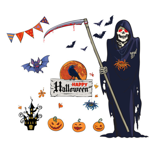 Інтер'єрна наклейка HL Смерть SK9318 60х90см – це швидкий спосіб класно прикрасити свій будинок. Інтернет - магазин Карнавал Приколів пропонує Вам купити інтер'єрні наклейки хорор тематики, які ідеально підійдуть на кухню, спальню, вітальню. Прикраса на стіну оцінять у кімнаті страху або декара Хелловін. Як 3D наклейка клеїться на стіну? Спосіб поклейки дуже простий. Для початку потрібно очистити поверхню, на яку потрібно наклеїти. Після цього знімаємо плівку і переносимо малюнок на стіну або іншу площину рукою або ганчіркою. На які поверхні можна клеїти інтер'єрну наклейку? Поклейка можлива на будь-яку ІДЕАЛЬНО ГЛАДКУ ГЛЯНЦЕВУ поверхню, наприклад: стіна пофарбована глянсовою фарбою без будь-яких рельєфів (у фарбі не повинно бути крейдяного компонента), скло, дзеркало, лаковані поверхні, гладкий пластик. На шпалери клеїти НЕ МОЖНА. Доглядати стікери на стіну також досить легко, для цього необхідно лише іноді протирати їх вологою губкою або ганчіркою. Яскравість і насиченість наклейок не змінюється з часом, крім того, вони абсолютно стійкі до вологості.