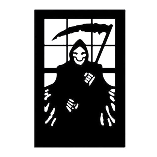 Інтер'єрна наклейка HL Смерть з косою 144 51х72см - це швидкий спосіб класно прикрасити свій будинок. Інтернет - магазин Карнавал Приколів пропонує Вам купити інтер'єрні наклейки хорор тематики, які ідеально підійдуть на кухню, спальню, вітальню. Прикраса на стіну оцінять у кімнаті страху або декара Хелловін. Як 3D наклейка клеїться на стіну? Спосіб поклейки дуже простий. Для початку потрібно очистити поверхню, на яку потрібно наклеїти. Після цього знімаємо плівку і переносимо малюнок на стіну або іншу площину рукою або ганчіркою. На які поверхні можна клеїти інтер'єрну наклейку? Поклейка можлива на будь-яку ІДЕАЛЬНО ГЛАДКУ ГЛЯНЦЕВУ поверхню, наприклад: стіна пофарбована глянсовою фарбою без будь-яких рельєфів (у фарбі не повинно бути крейдяного компонента), скло, дзеркало, лаковані поверхні, гладкий пластик. На шпалери клеїти НЕ МОЖНА. Доглядати стікери на стіну також досить легко, для цього необхідно лише іноді протирати їх вологою губкою або ганчіркою. Яскравість і насиченість наклейок не змінюється з часом, крім того, вони абсолютно стійкі до вологості.