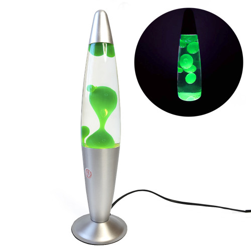Творчим людям необхідне натхнення. І кожен знаходить його у різних речах. Якщо Ви шукаєте те, що Вас надихатиме і даватиме Вам ідеї для творчості. Інтернет-магазин Карнавал Приколів представляє дуже незвичайний аксесуар для Вашої кімнати або кабінету Лава лампа з парафіном (34см) зелена. Лава лампа з парафіном зелена – це дуже незвичайний світильник нічник – прекрасне джерело для Вашого натхнення. Лава лампа виконана у вигляді колби, в якій знаходиться прозора олія та кольоровий парафін зеленого кольору. Цю колбу треба помістити на підставку, в якій знаходиться лампочка, яка підсвічує і починає нагрівати парафін. Може хтось не знає, але в холодному стані парафін важчий за олію і тим самим він лежить на дні колби, а при нагріванні стає легше і починає плавати по колбі. Лампа представлена в різних кольорах. Така лампа зачаровує і навіть гіпнотизує, змушуючи дивитись на чудовий ефект. Так само якщо після довгого робочого дня Ви хочете розслабитися і просто посидіти в кріслі та відпочити, то Лава лампа зробить Ваш вечір набагато приємнішим, той ефект, який зробить лампа на Вас, дозволить Вам насолодитися відпочинком на повну. Світильник працює від розетки 220V. Для більшого терміну служби виробу час роботи розігрітої лампи не повинен перевищувати 8-10 годин. При нагріванні знизу 25 або 30-ватною лампочкою парафін починає розширюватися, нагрівшись він стає менш щільним ніж рідина в якій він знаходиться і це змушує його підніматися. Для розігріву парафіну знадобиться близько години, постійно тримати увімкнену лампу не можна. Рекомендований час роботи лампи не більше 3-4 годин на максимальній яскравості та нагріванні, після досягнення активного руху - інтенсивність нагрівання/яскравості слід зменшити, щоб забезпечити підтримку від пімальної температури. У комплектацію входить: скляна колба з парафіном і маслом (рідина безбарвна, а парафін кольоровий), пластикова підставка з шнуром живлення з реле (для регуляції інтенсивності нагрівання), що підключається в розетку і кришка, маленька лампа розжарювання.