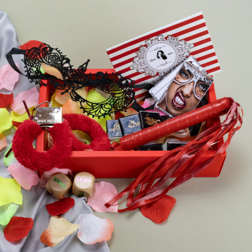 Комплектація: Декоративні пелюстки троянд, Мереживна маска, Кубики сімейні блаженство жіноче МОДЕРН (укр.), Наручники хутряні, Плеточка, Чекова книжка бажань ДЛЯ НЕЇ (укр.), міні-шоколадки Камасутра 6 шт