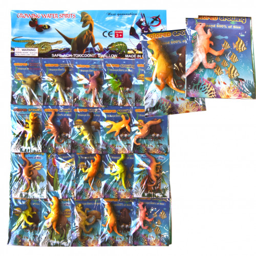 Для юного любителя біології така іграшка, що розвиває, - непідробна знахідка! Порадуйте дитину оригінальним подарунком і разом поспостерігайте за тваринами, що швидко ростуть у воді. Просто купіть та помістіть фігурку з упаковки у прозору ємність з холодною водою та спостерігайте. Бажано використовувати тільки холодну воду для фігурок, що ростуть. Через деякий період часу – тварини починають рости обсягом до 6 разів від початкового! Максимальні розміри досягаються протягом 72 годин. Вирощувати іграшку самим – це забавно та пізнавально! Секрет зростання полягає в гідрогелі (Орбіз), що входить до складу виробу. У початковому (сухому) вигляді іграшка розростання нагадує пластмасового або гумового звірка. Іграшку можна використовувати кілька разів. При висиханні фігурка зменшується у розмірі. Тільки врахуйте, що при кожному наступному висушуванні іграшка все менше збільшуватиметься при попаданні у воду. Комплектація: 20 фігурок в індивідуальному впакуванні на блістері.