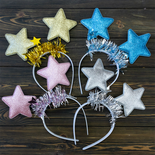Ободок карнавальный Звездочки на пружинках 13127 (золотой) - яркий и интересный аксессуар для праздника. Оригинальная задумка и форма приобрела успех в массовых праздниках. Подходит как детям, так и взрослым. Прекрасно смотрятся как на мальчиках, так и на девочках. Звезды выполнены из поролона, крепятся на пружинках к ободку. В любой праздник в этом карнавальном ободке вы будете выглядеть очень интересно.