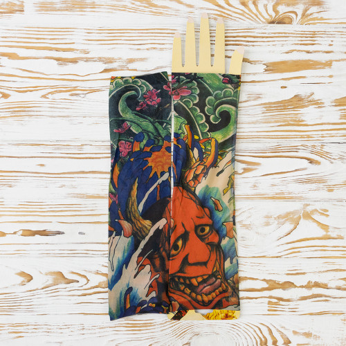 Вы мечтали о татуировке, но не могли решиться? Хотите расширить ассортимент Вашего магазина карнавальных аксессуаров? Тогда оптовый интернет магазин Карнавал Приколов предлагае купить бесшовные нейлоновые тату рукава с цветным рисунком. Тату рукава изготовлены из дышащего материала, по составу напоминающему капрон с пористой структурой, благодаря чему кожа под ними не потеет и не вызывают раздражений. Имеют универсальный размер. Одеваются тату рукава от запястья до плеча, поверх Вы можете одевать футболку или рубашку с кротким рукавом. Съемные тату рукава реалистично выглядят на руке, создавая впечатление эффектной татуировки. Рукава можно стирать.