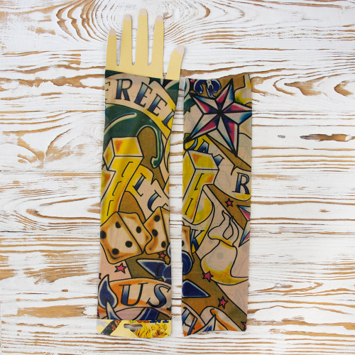 Вы мечтали о татуировке, но не могли решиться? Хотите расширить ассортимент Вашего магазина карнавальных аксессуаров? Тогда оптовый интернет магазин Карнавал Приколов предлагае купить бесшовные нейлоновые тату рукава с цветным рисунком. Тату рукава изготовлены из дышащего материала, по составу напоминающему капрон с пористой структурой, благодаря чему кожа под ними не потеет и не вызывают раздражений. Имеют универсальный размер. Одеваются тату рукава от запястья до плеча, поверх Вы можете одевать футболку или рубашку с кротким рукавом. Съемные тату рукава реалистично выглядят на руке, создавая впечатление эффектной татуировки. Рукава можно стирать.