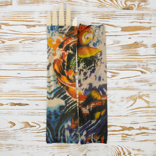 Вы мечтали о татуировке, но не могли решиться? Хотите расширить ассортимент Вашего магазина карнавальных аксессуаров? Тогда оптовый интернет магазин Карнавал Приколов предлагае купить бесшовные нейлоновые тату рукава с цветным рисунком. Тату рукава изготовлены из дышащего материала, по составу напоминающему капрон с пористой структурой, благодаря чему кожа под ними не потеет и не вызывают раздражений. Имеют универсальный размер. Одеваются тату рукава от запястья до плеча, поверх Вы можете одевать футболку или рубашку с кротким рукавом. Съемные тату рукава реалистично выглядят на руке, создавая впечатление эффектной татуировки. Рукава можно стирать.