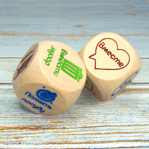 Кубики Домашних дел - отличный способ разнообразить свои домашние дела. С помощью которых распределять обязанности гораздо проще и интереснее. Кубики выполнены из дерева с вытеснеными разных цветов 6 видами действий и 6 локациями, в которых вы можете испробовать выпавшие комбинации. Просто кидайте кубики и решайте, кому какое из домашних дел предстоит выполнять сегодня. Добавьте в повседневные хлопоты азарт и веселье! Купив игральные кости в интернет магазине Карнавал Приколов Вы получаете качественный товар украинского производства и 100% позитивных впечатлений от преобретения.