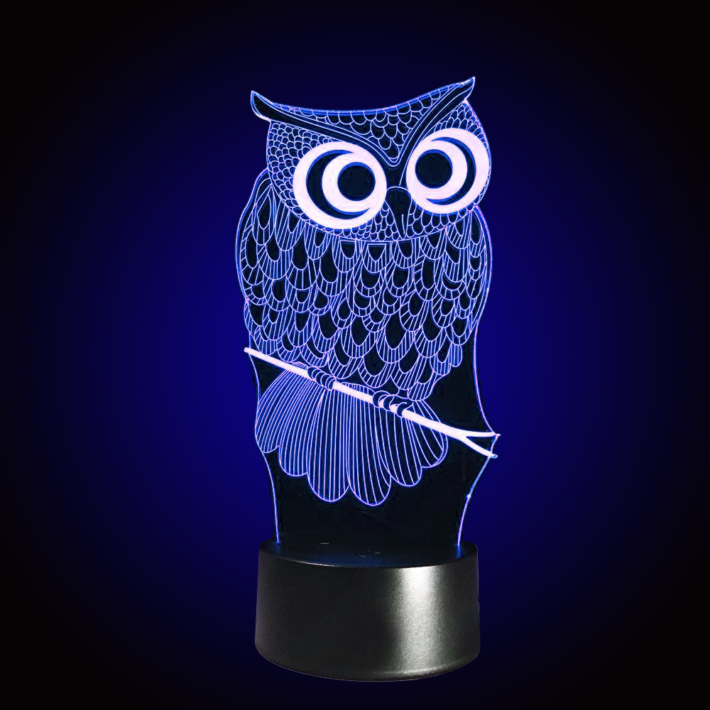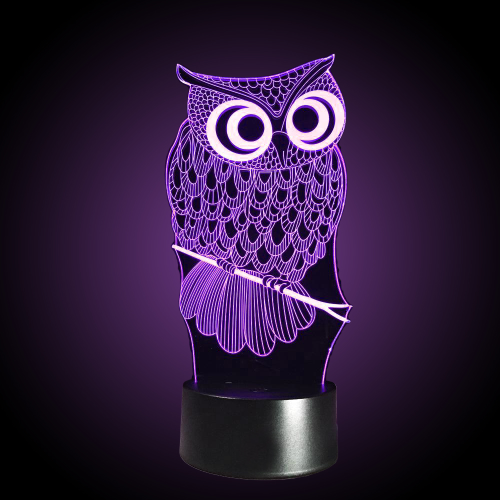Хотите удивить родных, друзей или коллег оригинальным подарком? Купите им 3D-светильник в нашем интернет-магазине Карнавал Приколов. Классические уже поднадоели многим, а ведь современная индустрия предлагает такие варианты, которые гармонично впишутся практически в любой интерьер, придадут ему изюминки, украсят и наполнят пространство сказочной атмосферой. В выключенном состоянии 3D Светильник Сова выглядит красиво, но настоящее волшебство начинается, когда его включают. Благодаря тому, что подсвечивается специальная пластина, создается 3D-проекция. Маленькие дети будут просто в восторге от такого необычного подарка, хотя взрослые радуются домашнему волшебству не меньше. Подарок 3D светильник подойдет семьям, в которых есть дети любого возраста. Творческим личностям. Влюбленным парам, которые только начинают жить вместе и любят устраивать романтические вечера. Светильник светиться синим и красным, малиновым цветом. В комплект входит: подставка для светильника, шнур питания, подключающийся в розетку и фигурка из акрилового листа и упаковка. Фигурка, установленная на основу, представляет собой плоский и прозрачный акриловый лист толщиной 5 мм со специально нанесенной гравировкой ( который защищен от механических повреждений плотной бумагой на клеевой основе, которую необходимо снять перед первым включением светильника), которая подсвечивается снизу светодиодной лентой. Именно так с виду обычное стекло превращается в реалистично объемную картинку. Такой светильник станет оригинальным подарком любимому человеку, другу или ребенку. Работает от сети 220V.