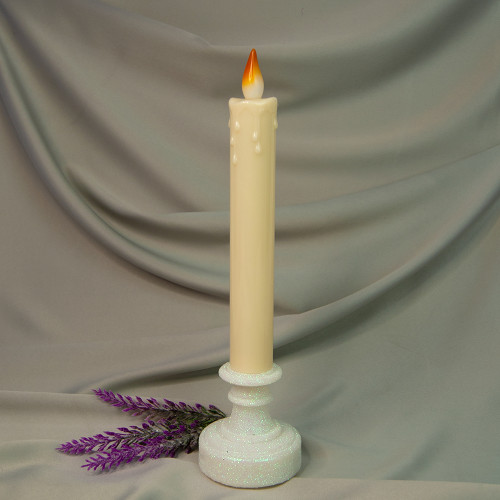 Свеча LED в подсвечнике L24см (белая) - декоративная света, которая никогда не поменяет свою форму и не сгорит. А самое главное не оставит капель воска на скатерти или столе. Свеча-лампа LED изготовлена из пластика. По форме имитирует свечу в подсвечнике с потеками воска по основанию свечи. В основании подсвечника расположен отсек для батареек. Источник питания для свечи - 2 батарейки типа АА (пальчиковые батарейки). Для включения/выключения на обратной стороне основания необходимо поставить переключатель в положение ON/OFF. Свечение мягкое, ненавязчивое. За счет окраса пластика в верхней части и легкого хаотичного мигания имитируется движение огня. Такая свеча станет отличным элементом декора для создания романтической атмосферы. Послужит ночником для ребенка.