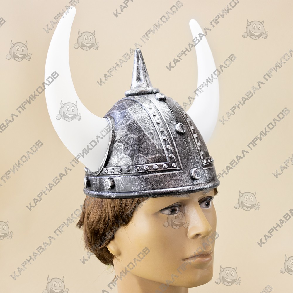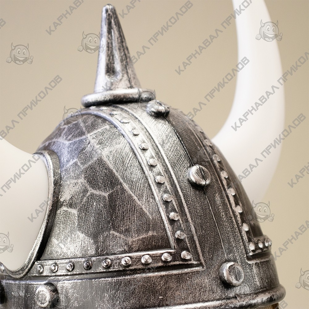 Прикольний яскравий аксесуар Шолом Варяга з рогами (срібло антик), що доповнює Карнавальний костюм. У такому карнавальному головному уборі вікінгу будь-який хлопчик чи чоловік відчує себе сміливим та хоробрим воїном. Адже дорослі теж не проти згадати дитинство і пограти у війну, наприклад на корпоративі. Він ідеально зможе доповнити костюм лютого скандинавського воїна.