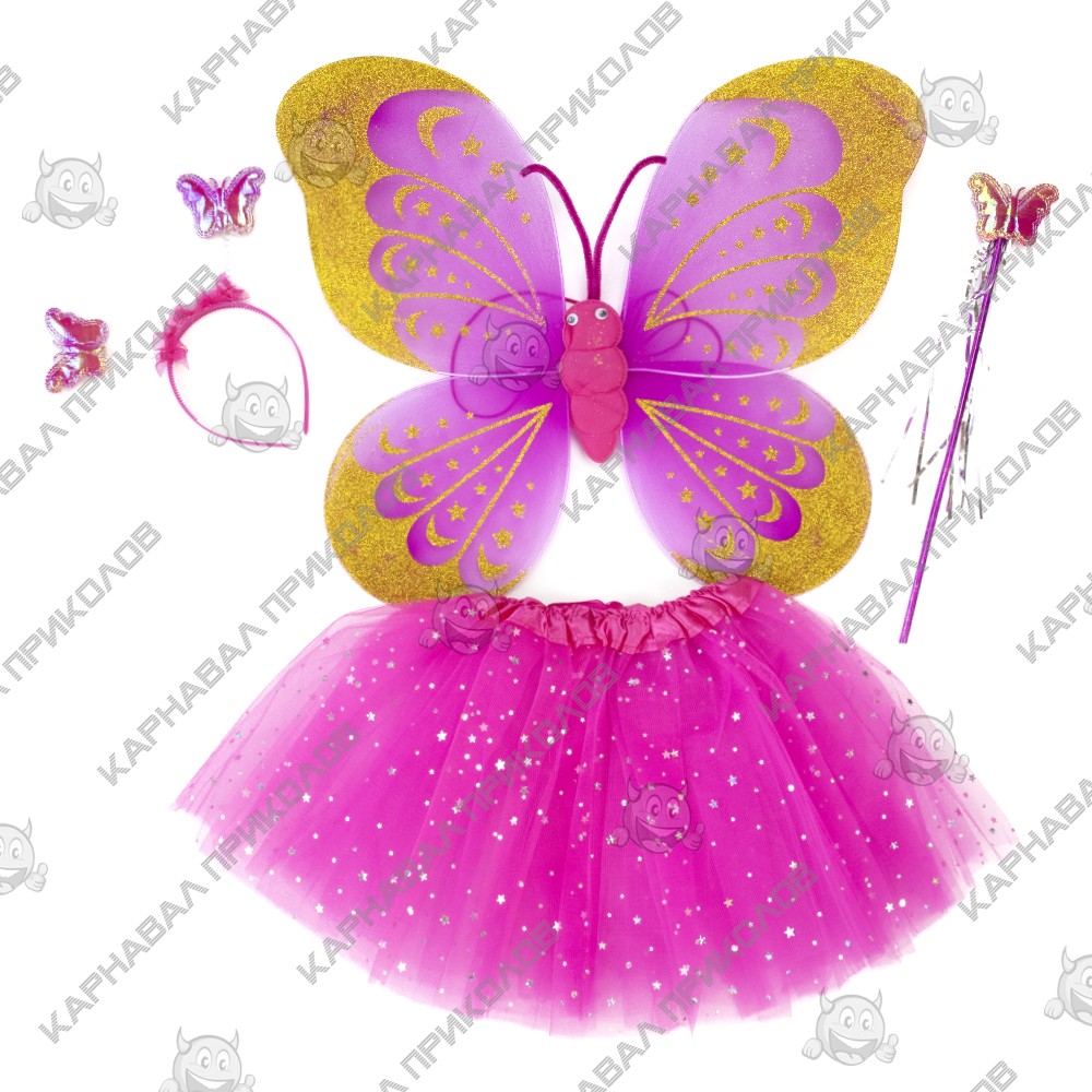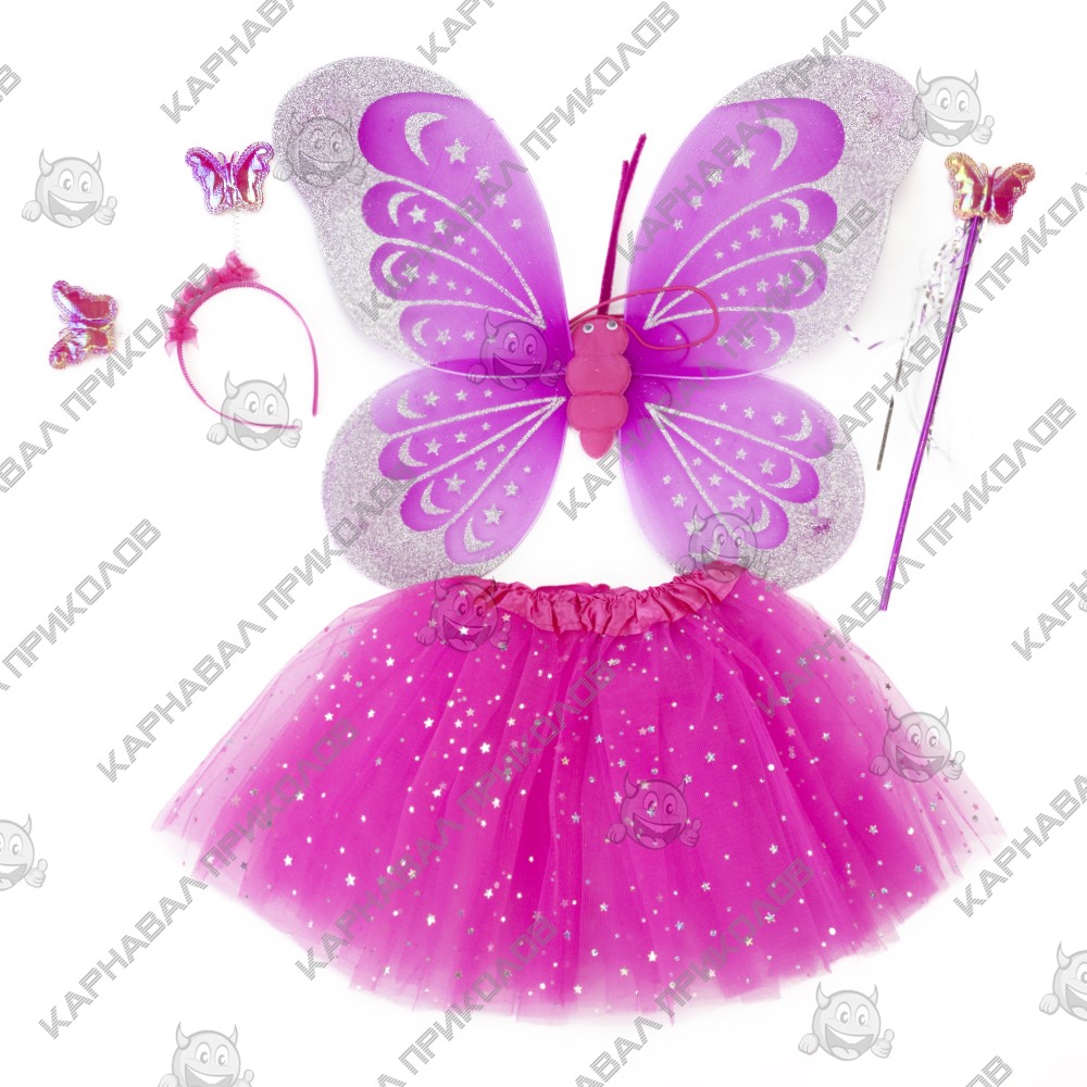 | Додаткові характеристики: | Крила - 50х38см, спідниця з фатину: ширина в талії - 45 см, довжина спідниці - 30см, паличка: 35х7х1см, обідок: 22х21х1, 5см |