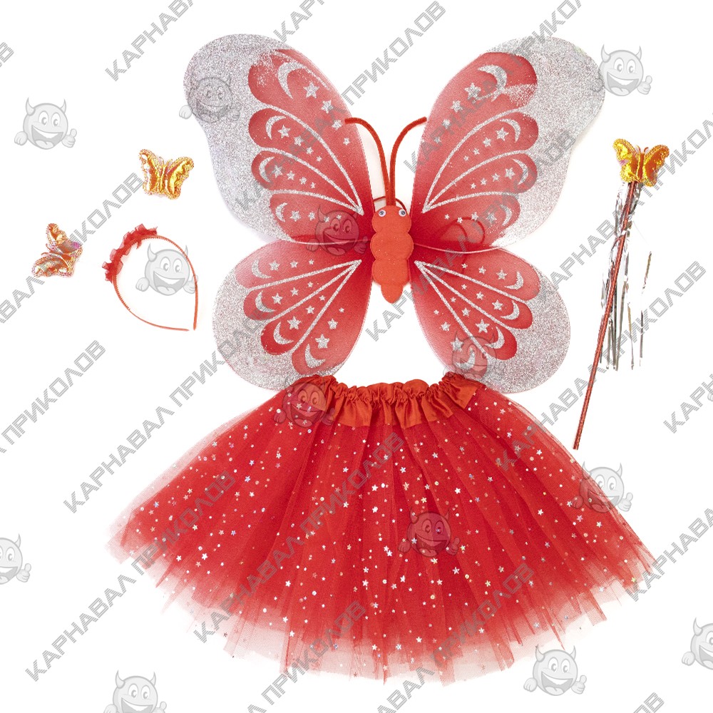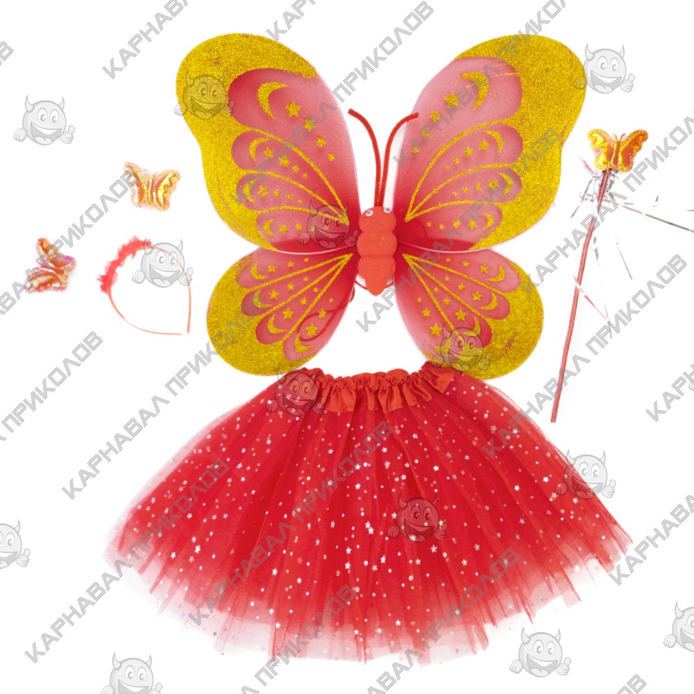 | Додаткові характеристики: | Крила - 50х38см, спідниця з фатину: ширина в талії - 45 см, довжина спідниці - 30см, паличка: 35х7х1см, обідок: 22х21х1, 5см |