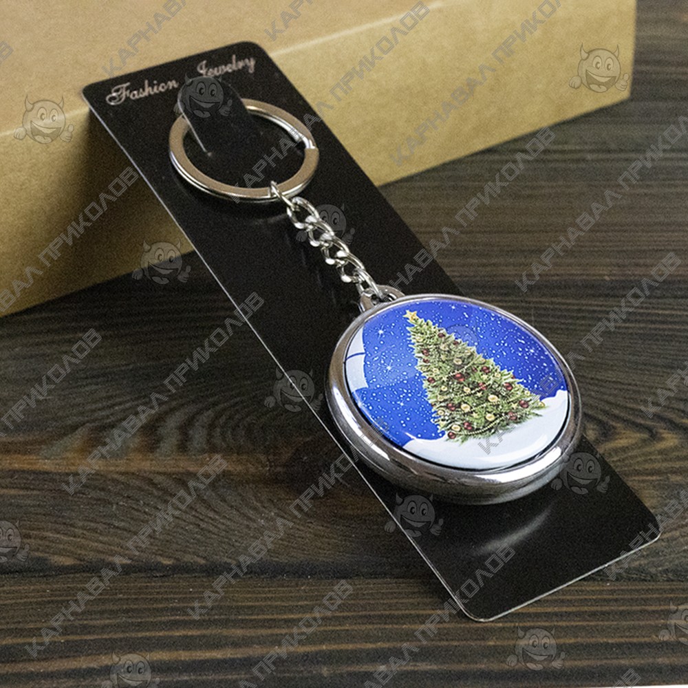 Брелок 6851 об'ємний Новорічна Ялинка – Магія в Кожному Русі.Цей святковий об'ємний брелок – ідеальний спосіб завжди мати при собі частинку новорічного дива! Брелок виконаний у формі круглого медальйона з яскравим, якісним зображенням. У центрі композиції — пишна, ошатна ялинка, прикрашена червоними та золотими кульками, що стоїть на засніженому фоні під глибоким синім небом, всипаним мерехтливими зірками та сніжинками. Завдяки глянцевому покриттю (що надає візуального об'єму та блиску) брелок виглядає дуже привабливо та святково. Він є двостороннім, що забезпечує естетичну привабливість з будь-якого ракурсу. Цей брелок чудово підходить як аксесуар до зв'язки ключів, як прикраса для рюкзака або як милий новорічний подарунок чи корпоративний сувенір у святковий сезон. Металевий ланцюжок і кільце надійно кріплять брелок, додаючи йому довговічності та зручності у використанні. Нехай цей об'ємний брелок з новорічною ялинкою завжди нагадує вам про чарівність свят!