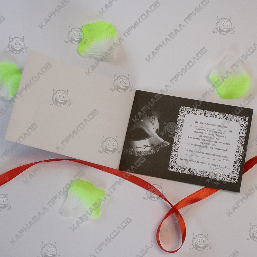 Чекова книжка бажань ВІДТІНКИ СІРОГО (укр. ) – найдорожчий подарунок, тому що Ви даруєте найбезцінніші речі Любов та Увага. Це чудовий та незабутній подарунок на будь-яке свято для Вашої половинки. З подарунком Чекова книжка бажань ВІДТІНКИ СІРОГО (укр. ) Ви зобов'язуєтеся виконати 15 простих, але водночас дуже приємних квестів чи бажань вашої дівчини у встановлений період. Книга складається з 16 сторінок, сторінки з детальною інструкцією з використання та 15 дизайнерських купонів з бажаннями все російською мовою. Наприклад – день кохання та ласки, Хочу. . , рольові гри та багато інших. Ваша кохана вибирає купон з бажанням, а Ви маєте його виконати. На додаток чековій книжці Ви можете придбати солодкий сюприз та оригінальний подарунок 100 та Одна Причина у нашому інтернет магазині Карнавал Приколів. Купивши Чекова книжка бажань ВІДТІНКИ СІРОГО (укр. ), ви отримуєте не тільки якісний товар, а й 100% позитивних вражень від придбання.