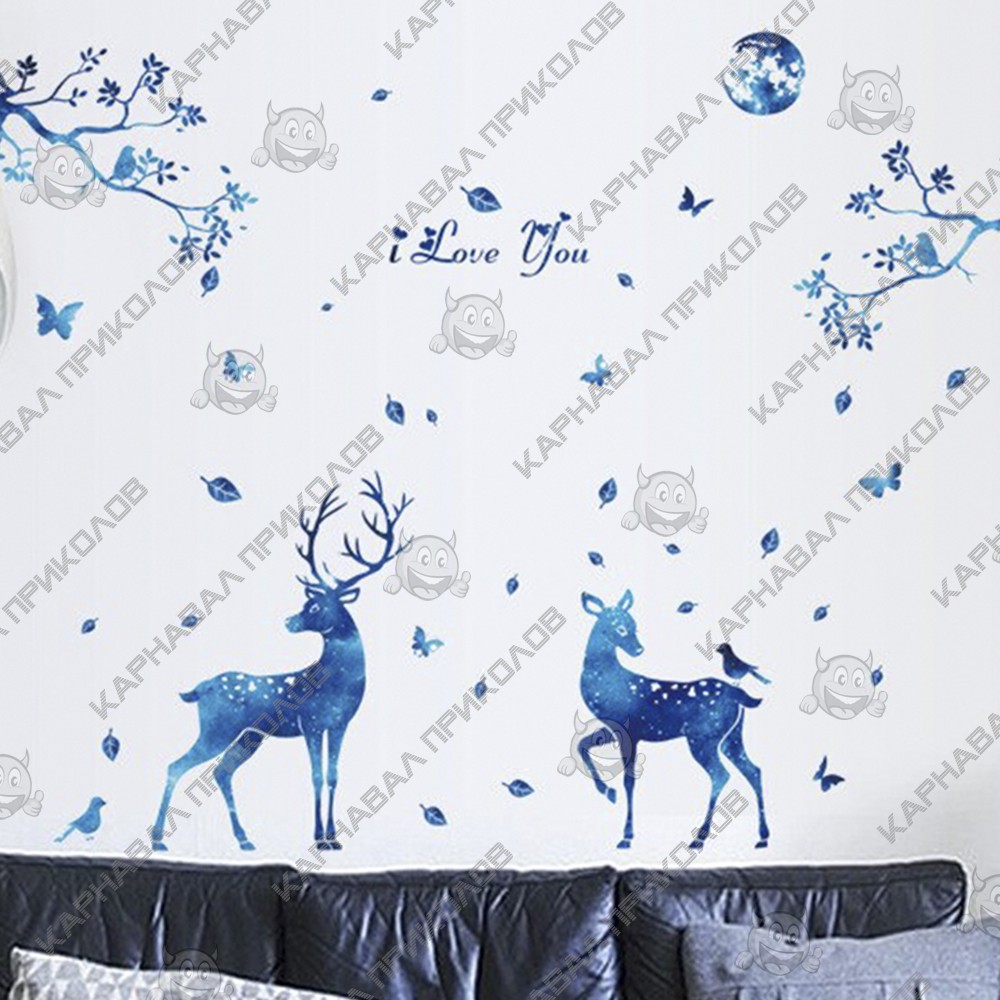 Інтер'єрна наклейка ZOO Блакитний Олень SK9181 60х90см – це швидкий спосіб класно прикрасити свій будинок. Інтернет-магазин Карнавал Приколів пропонує Вам купити інтер'єрні наклейки тематики тварин, які ідеально підійдуть на кухню, спальню, вітальню, дитячу чи ігрову кімнату. Прикрасу на стіну оцінять діти у своїх спальнях чи ігрових кімнатах. Інтер'єрна наклейка ZOO Блакитний Олень SK9181 60х90см принтом 2готубих благородних оленів і 2 гілочками з листочками, що падають. Розмір листа з наклейками: 60х90 см. Як 3D наклейка клеїться на стіну? Спосіб поклейки дуже простий. Для початку потрібно очистити поверхню, на яку потрібно наклеїти. Після цього знімаємо плівку і переносимо малюнок на стіну або іншу площину рукою або ганчіркою. На які поверхні можна клеїти інтер'єрну наклейку? Поклейка можлива на будь-яку ІДЕАЛЬНО ГЛАДКУ ГЛЯНЦЕВУ поверхню, наприклад: стіна пофарбована глянсовою фарбою без будь-яких рельєфів (у фарбі не повинно бути крейдяного компонента), скло, дзеркало, лаковані поверхні, гладкий пластик. На шпалери клеїти НЕ МОЖНА. Доглядати стікери на стіну також досить легко, для цього необхідно лише іноді протирати їх вологою губкою або ганчіркою. Яскравість і насиченість наклейок не змінюється з часом, крім того, вони абсолютно стійкі до вологості.