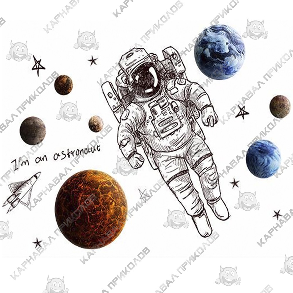 Інтер'єрна наклейка SS Космонавт XL8335 90х60см – це швидкий спосіб класно прикрасити свій будинок. Інтернет-магазин Карнавал Приколів пропонує Вам купити інтер'єрні наклейки на тематику космос, які ідеально підійдуть на кухню, спальню, вітальню, дитячу чи ігрову кімнату. Прикрасу на стіну оцінять діти у своїх спальнях чи ігрових кімнатах. Інтер'єрна наклейка SS Космонавт XL8335 90х60см з принтом астронавта та планет. Розмір листа з наклейками: 60х90 см. Розмір астронавта - 75х48,5 см. Діаметр планет від 8 до 30 см. Як 3D наклейка клеїться на стіну? Спосіб поклейки дуже простий. Для початку потрібно очистити поверхню, на яку потрібно наклеїти. Після цього знімаємо плівку і переносимо малюнок на стіну або іншу площину рукою або ганчіркою. На які поверхні можна клеїти інтер'єрну наклейку? Поклейка можлива на будь-яку ІДЕАЛЬНО ГЛАДКУ ГЛЯНЦЕВУ поверхню, наприклад: стіна пофарбована глянсовою фарбою без будь-яких рельєфів (у фарбі не повинно бути крейдяного компонента), скло, дзеркало, лаковані поверхні, гладкий пластик. На шпалери клеїти НЕ МОЖНА. Доглядати стікери на стіну також досить легко, для цього необхідно лише іноді протирати їх вологою губкою або ганчіркою. Яскравість і насиченість наклейок не змінюється з часом, крім того, вони абсолютно стійкі до вологості.